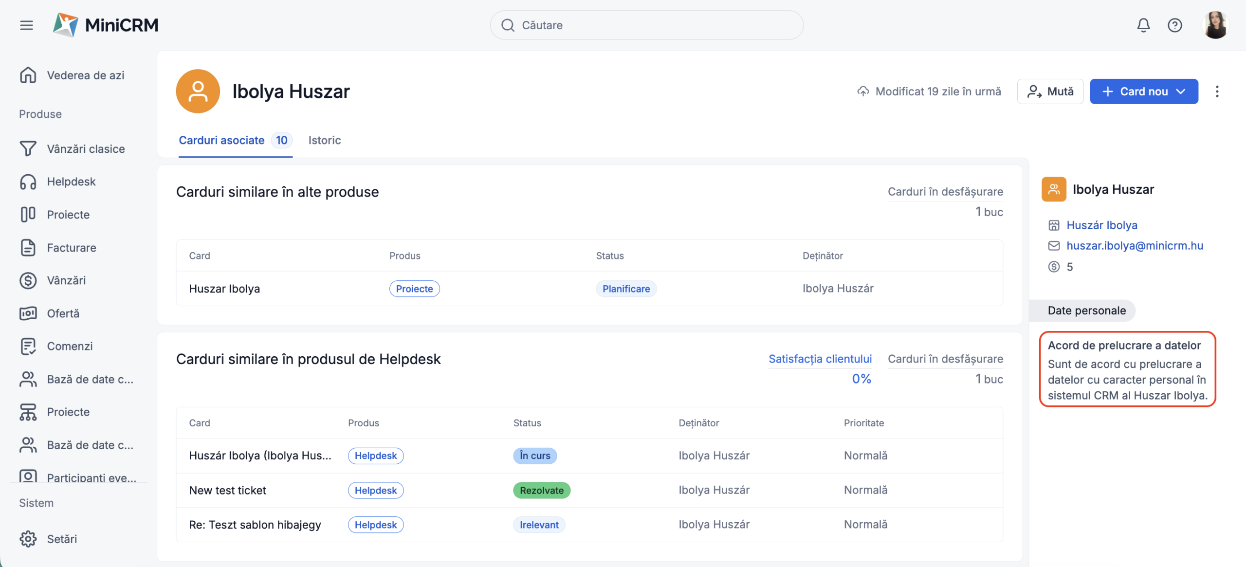 După completarea formularului și acceptarea acordului de prelucrare a datelor cu caracter personal vei putea vizualiza pe cardul contactului conținutul câmpului.